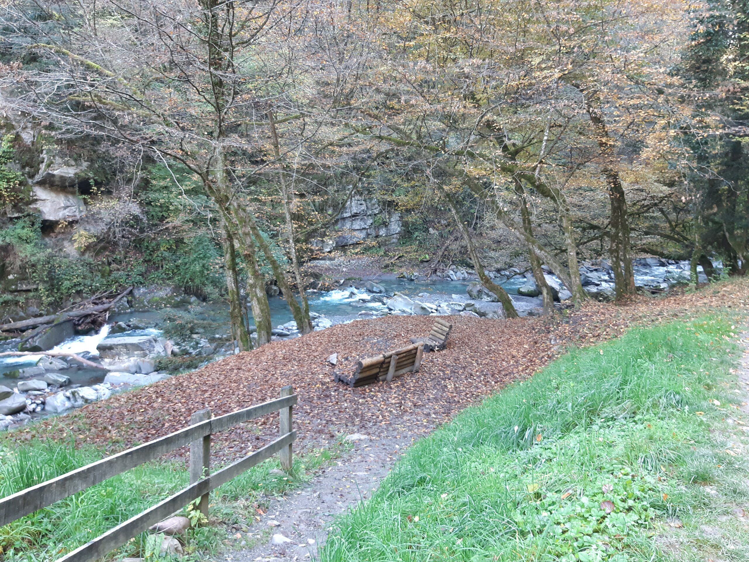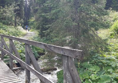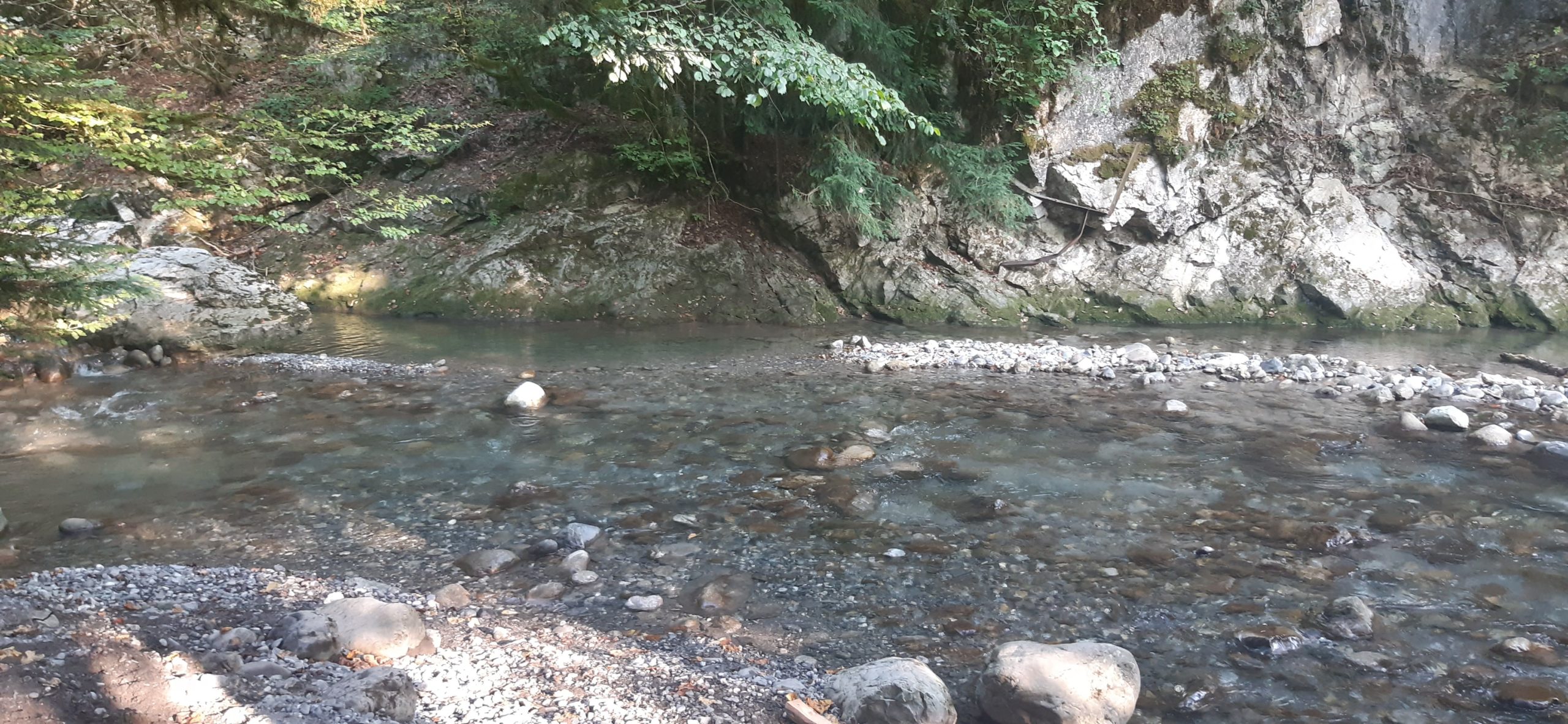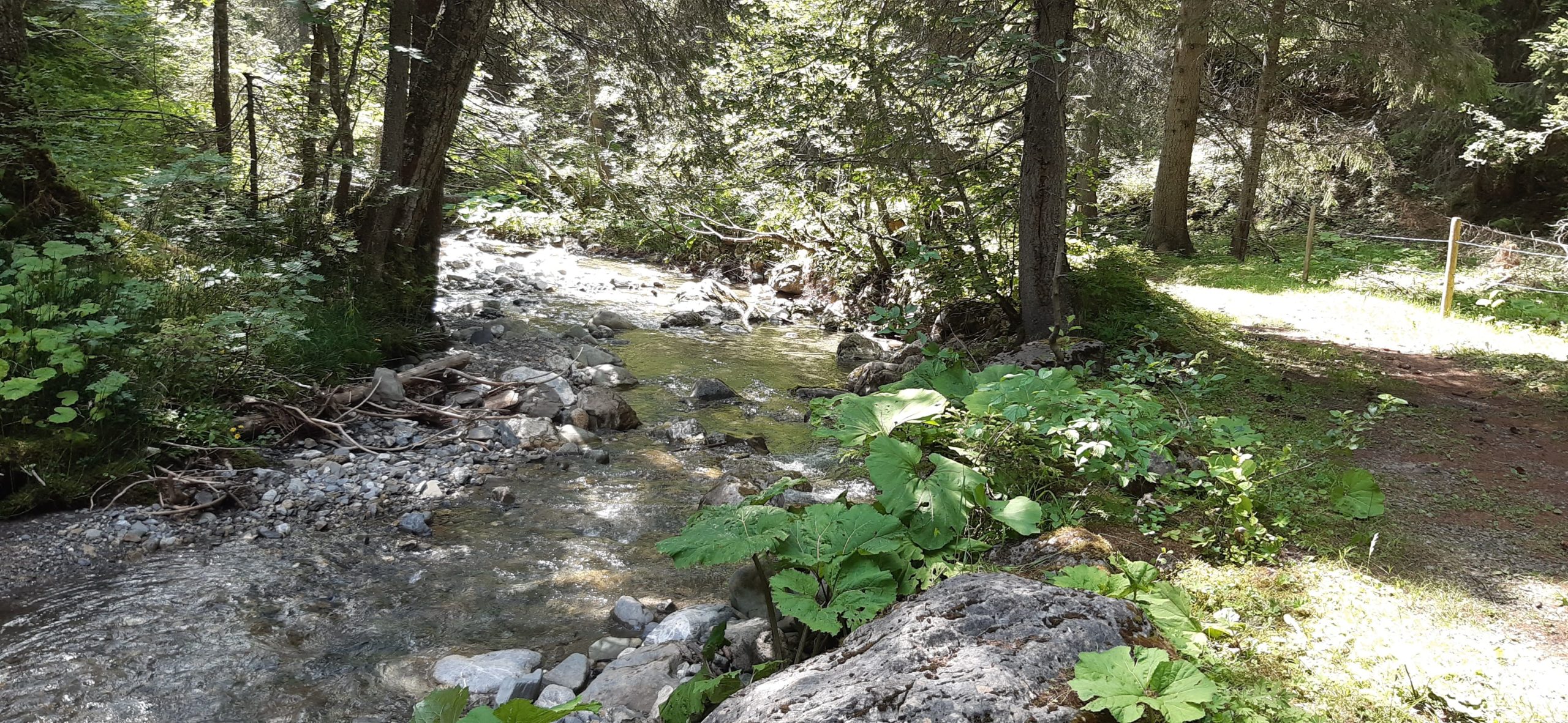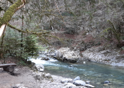 Marche d’env. 1h (avec enfant) sur un joli chemin de forêt plat et ombragé le long de la Vièze jusqu’à la buvette de They.