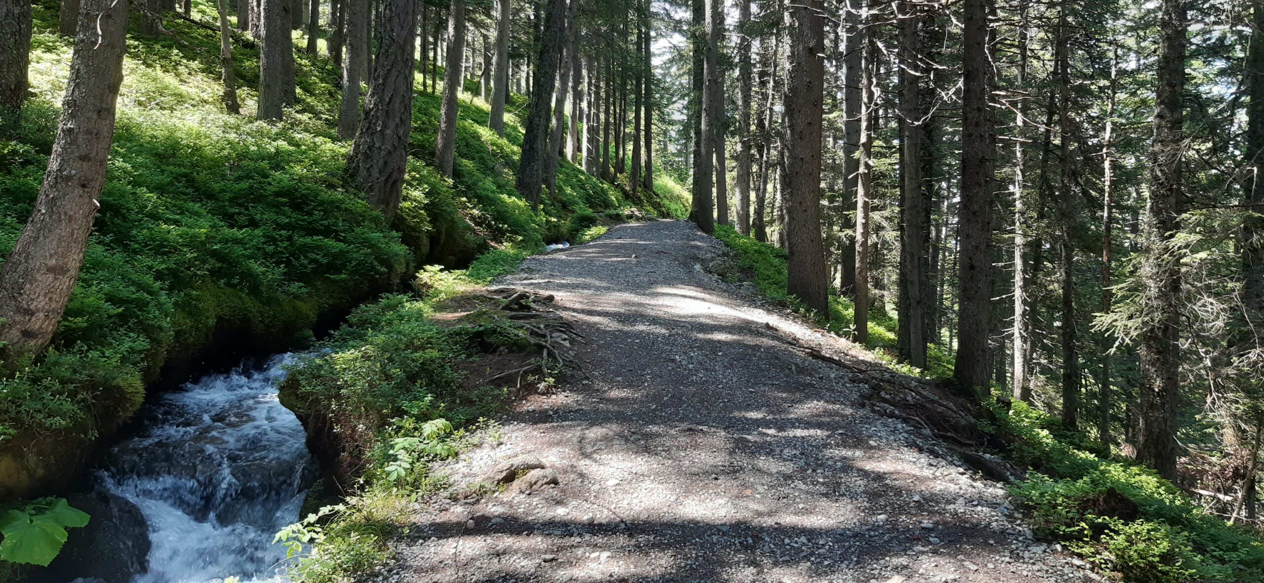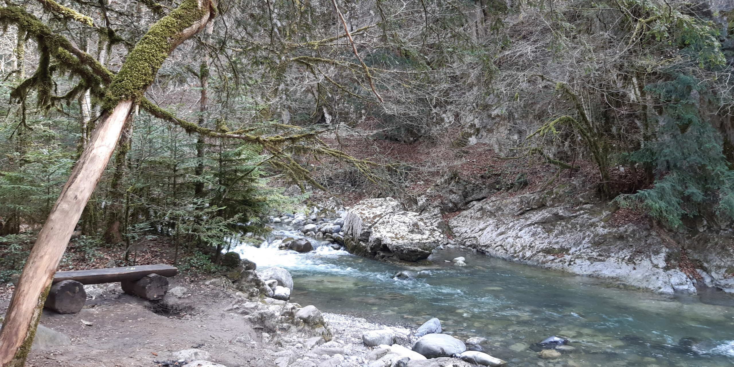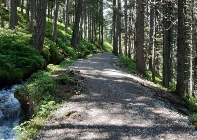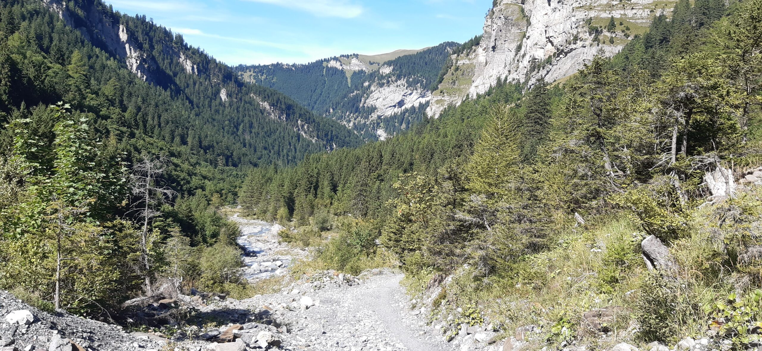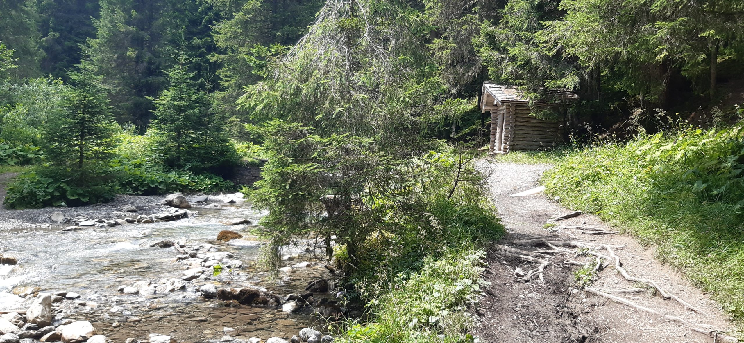 Marche d’env. 1h (avec enfant) sur un joli chemin de forêt plat et ombragé le long de la Vièze jusqu’à la buvette de They.