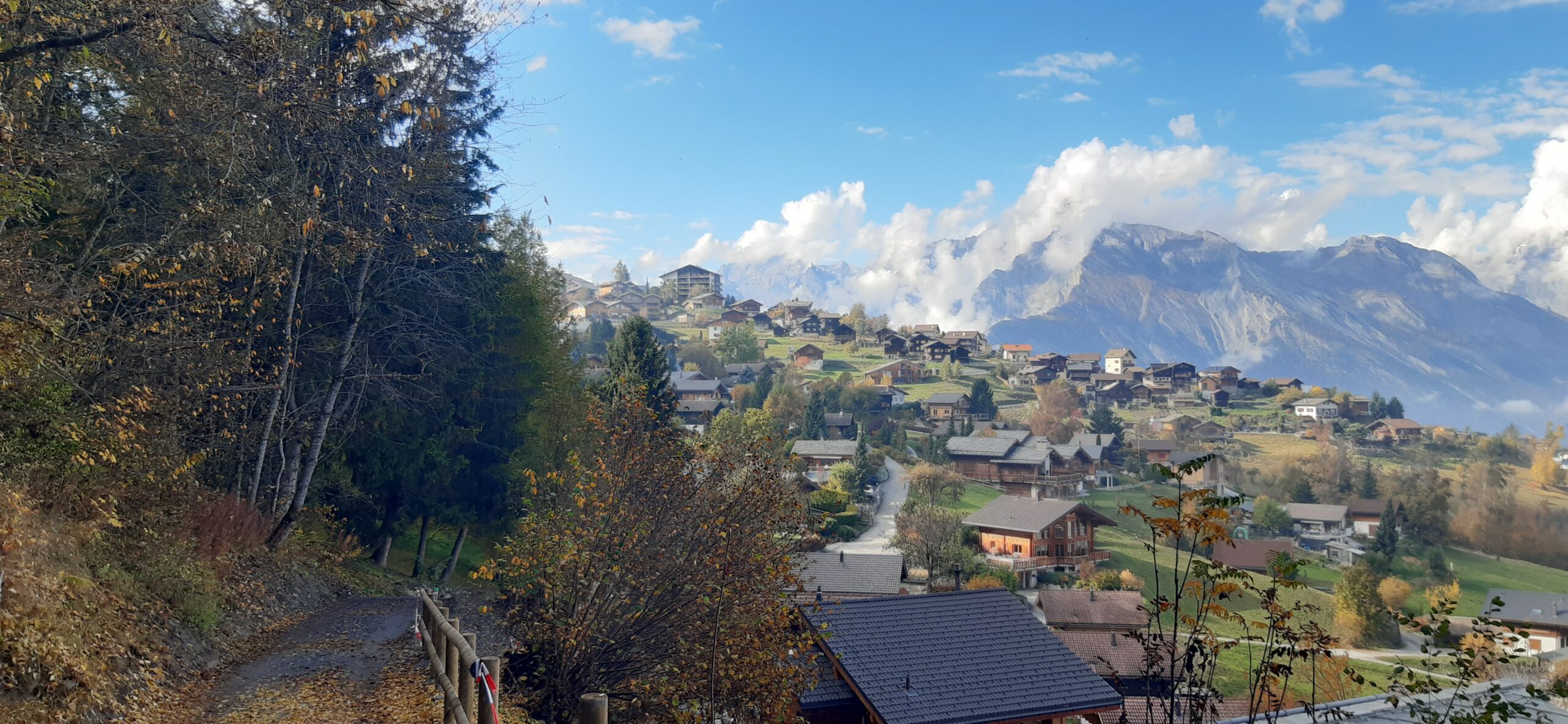 Retour par la route, à travers des quartiers résidentiels à Choex (et passage devant une place de jeux)
