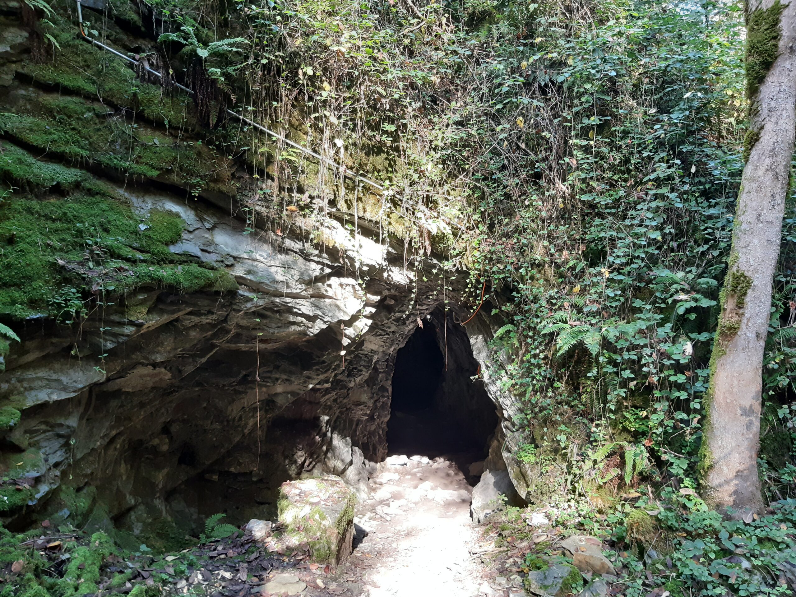 Pour monter jusqu’au pont, le sentier passe dans un tunnel qu’il est possible d’éclairer grâce à des interrupteurs.