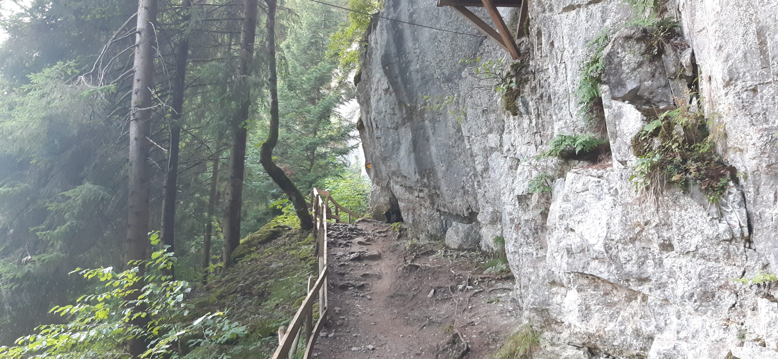 Le chemin est à flan de falaise, sécurisé par une barrière et mène jusqu’à la Cantine des Rives (restaurant).
