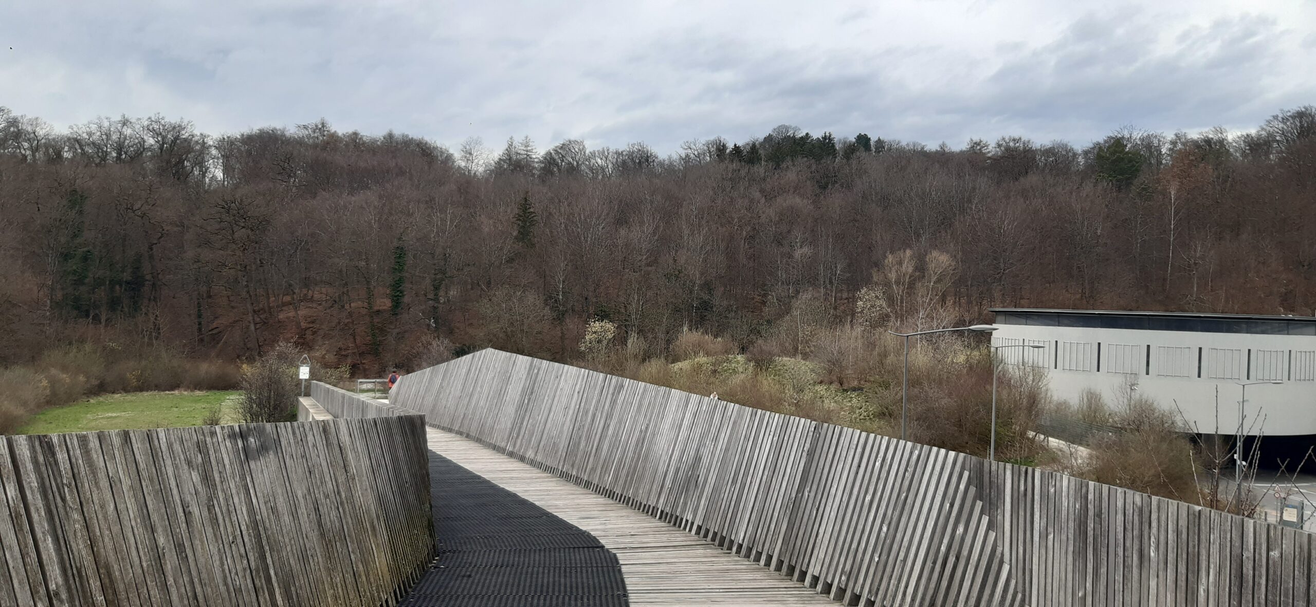 Passage par la passerelle qui mène à TriDel pour se retrouver rapidement en forêt et monter env. 30 min. (avec enfants) jusqu’au lac de Sauvabelin.