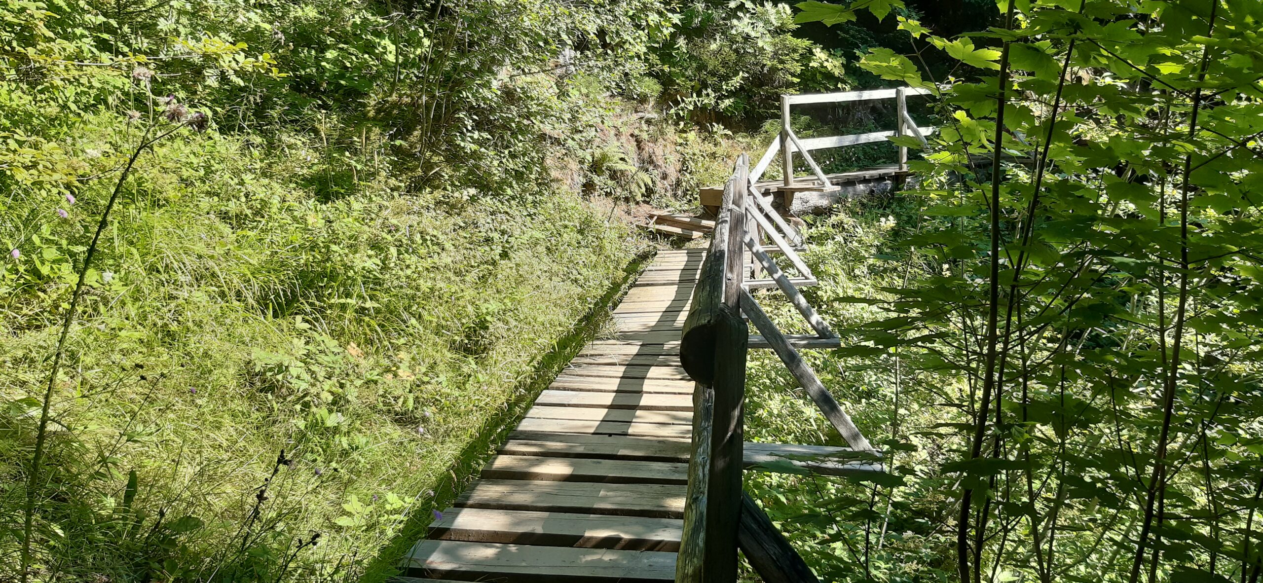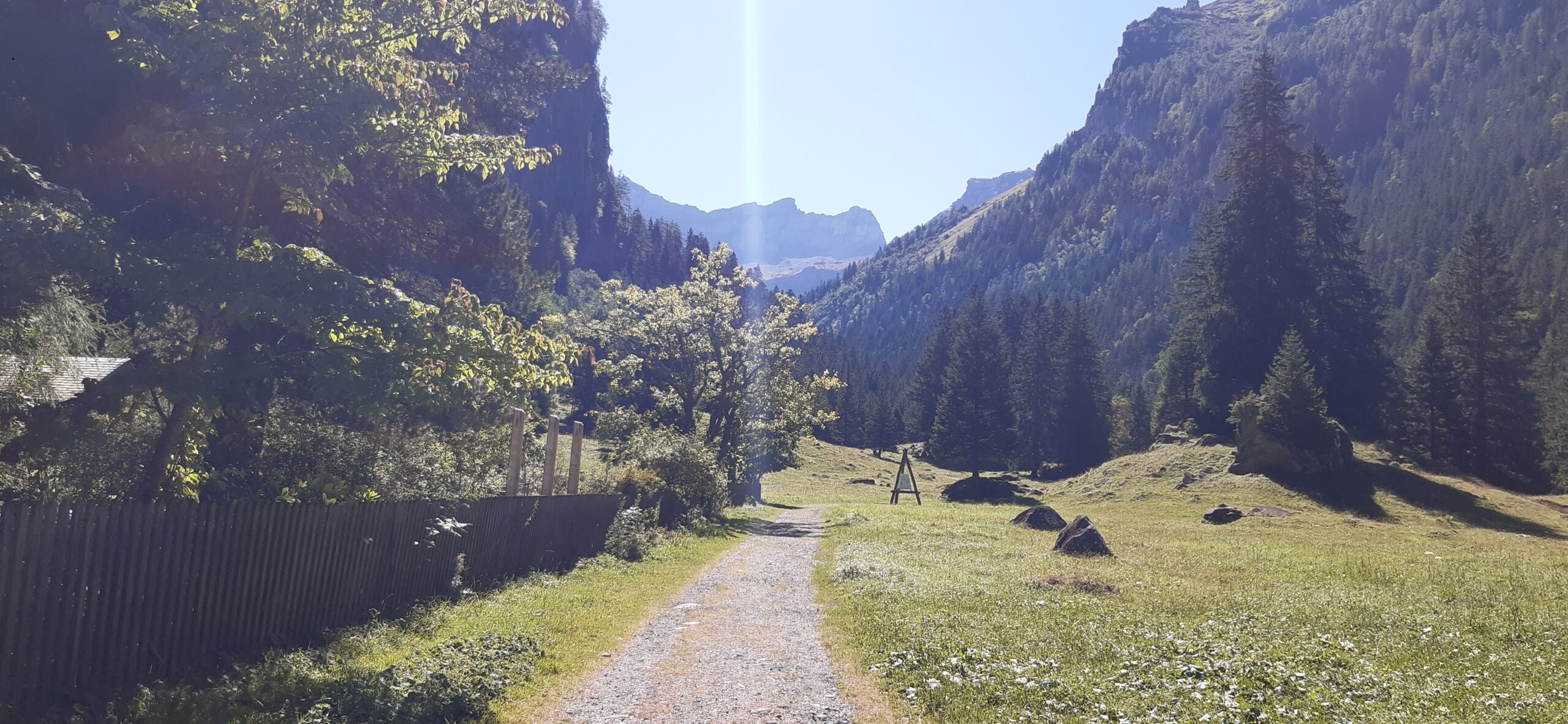 Marche de env. 1h30 avec peu de dénivelé pour arriver jusqu’à une passerlle suspendue à la hauteur de Choex.