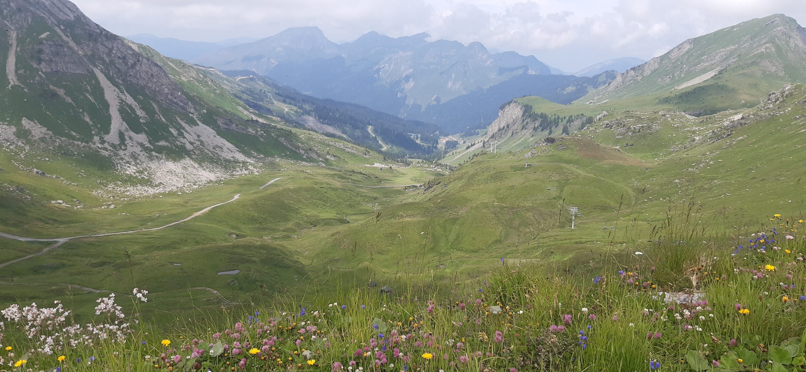 Retour avec le télésiège des Mosettes depuis Brochaux (45 min. de marche depuis les Lindarets) puis descente de la pointe des Mosettes jusqu’aux Crosets avec le premier télésiège pris.